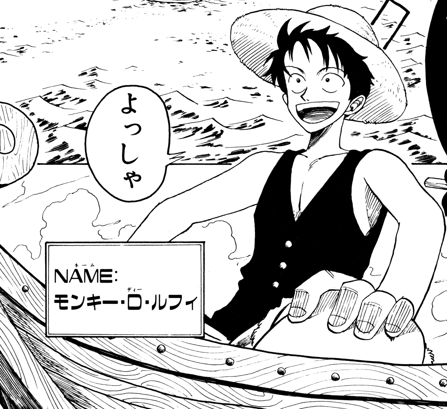 - ↑ Wanted! (p. 202), In a retrospective commentary on Romance Dawn, Version 2, Oda explains the genesis of One Piece.