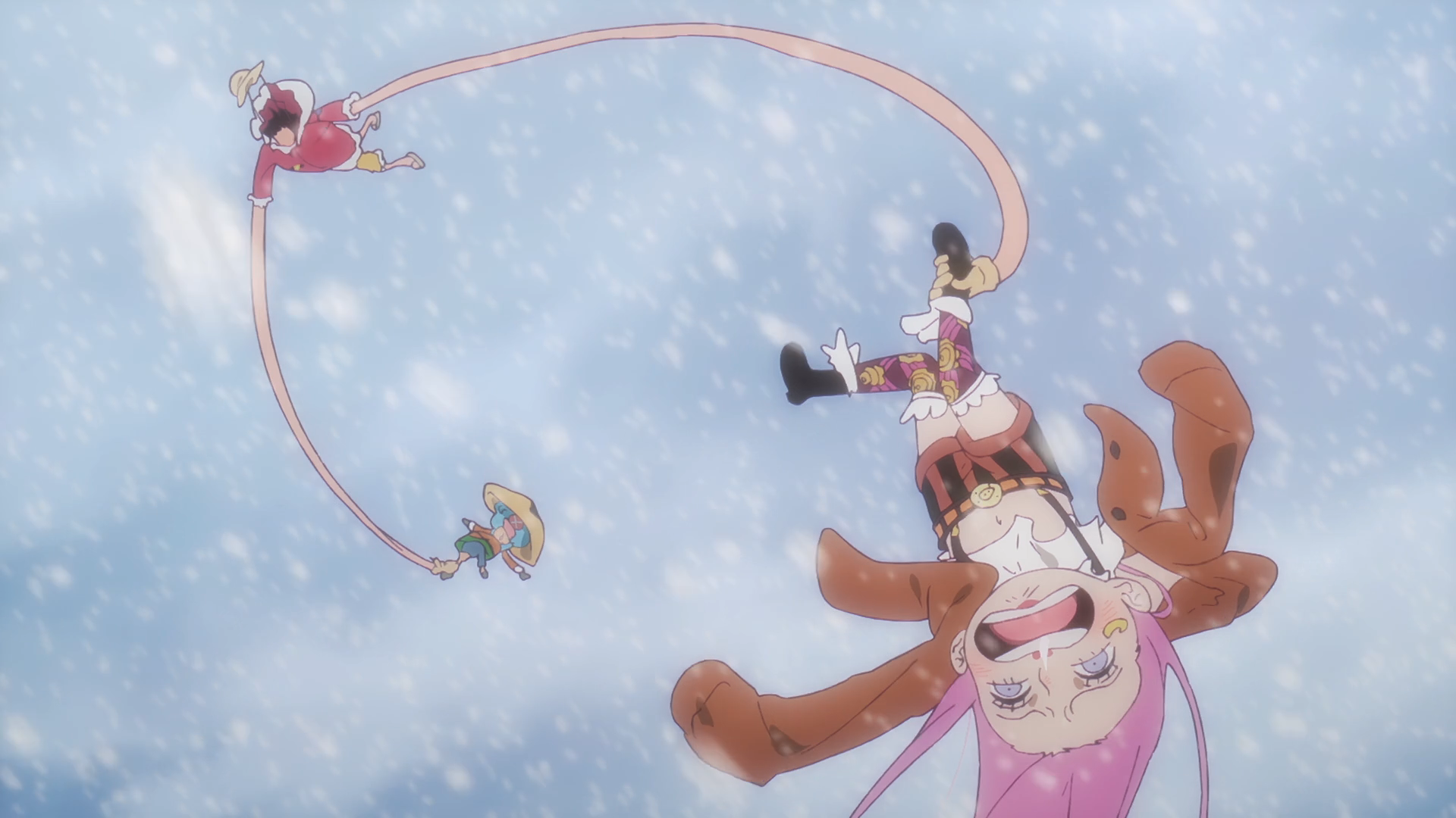 - ↑ 62.0 62.1 One Piece Manga and Anime — Vol. 105 Chapter 1061 (p. 12-13) and Episode 1090.