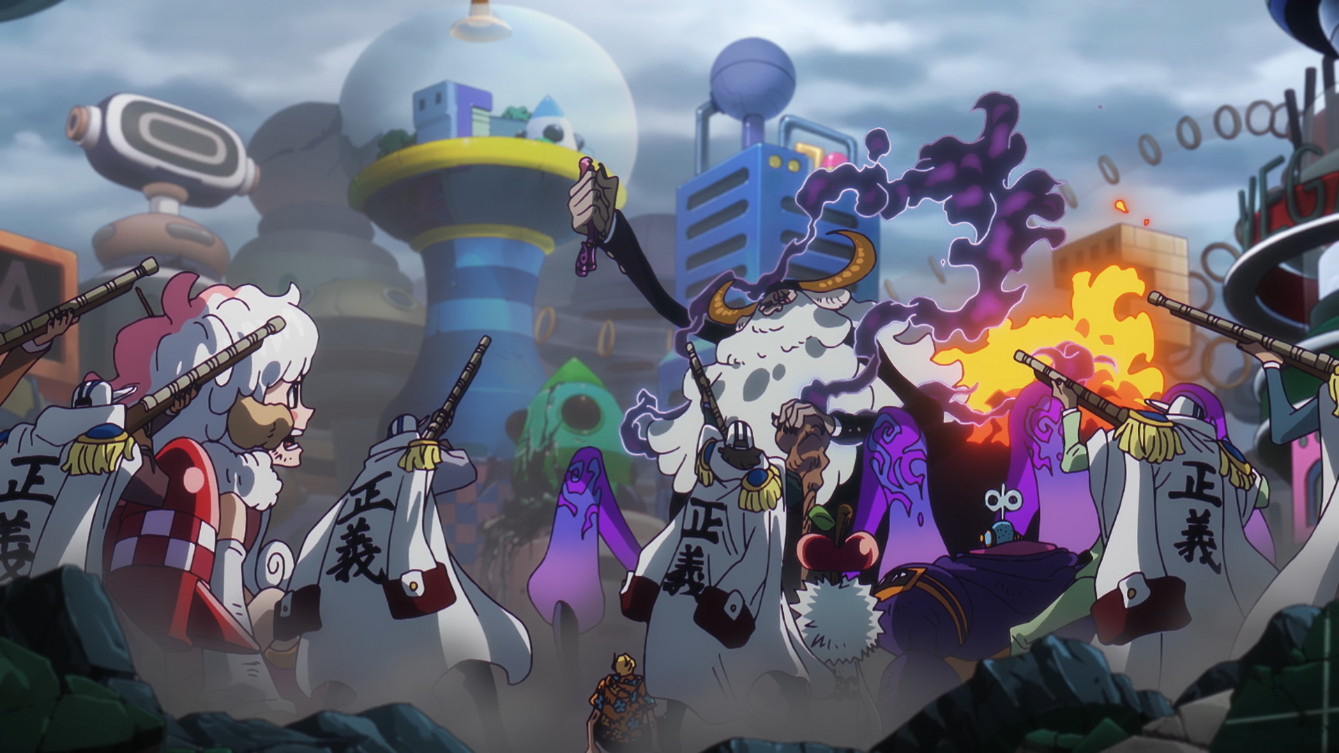 - ↑ One Piece Manga and Anime — Vol. 105 Chapter 1062 and Episode 1091.