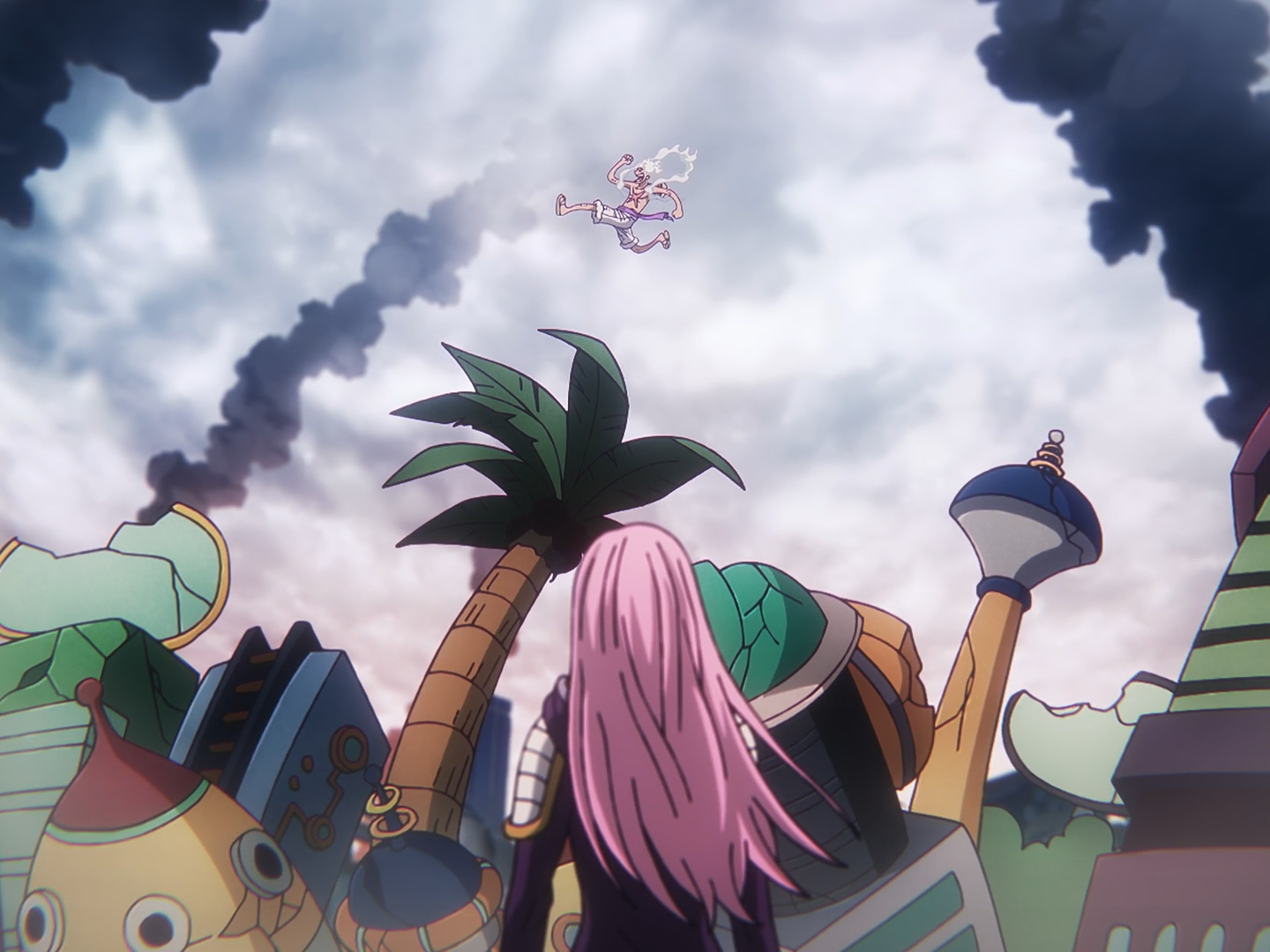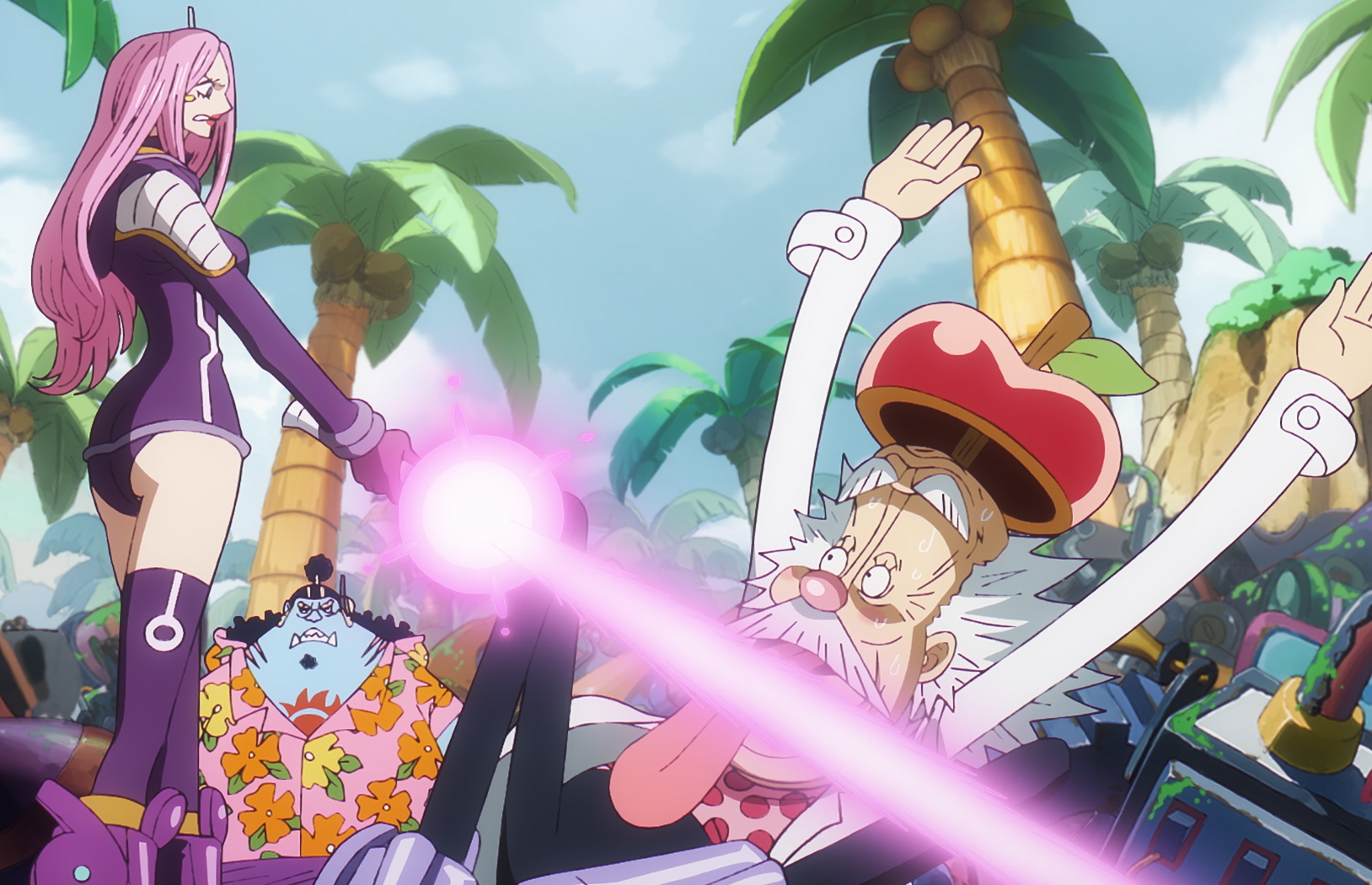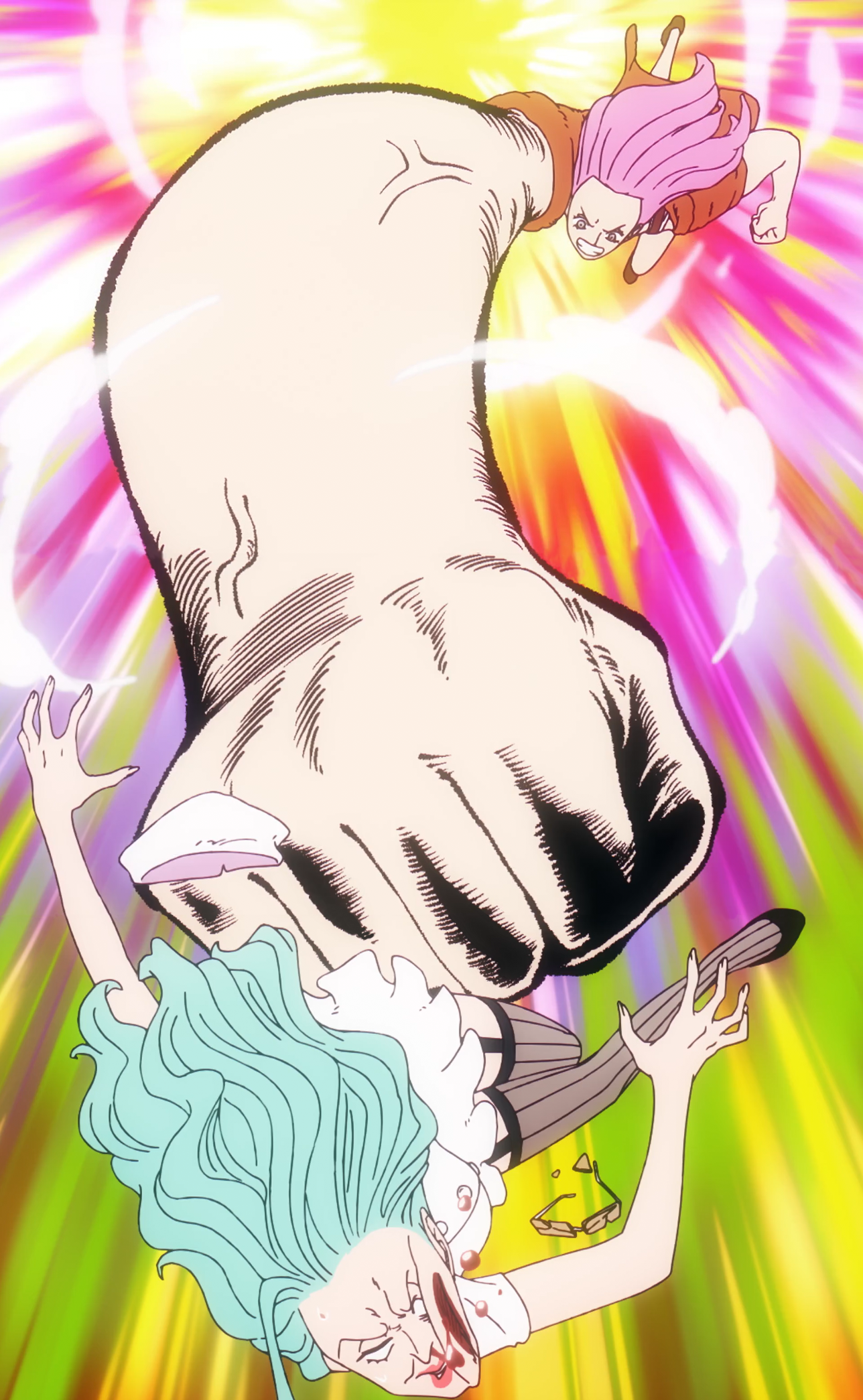 Luffy and Bonney prepare to defeat Saturn together.