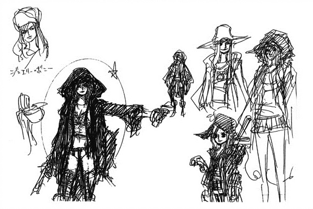- ↑ One Piece Magazine Vol.8 (p. 76), Several early design sketches for Bonney are revealed.