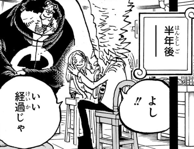 - ↑ One Piece Manga — Vol. 108 Chapter 1098 (p. 12).