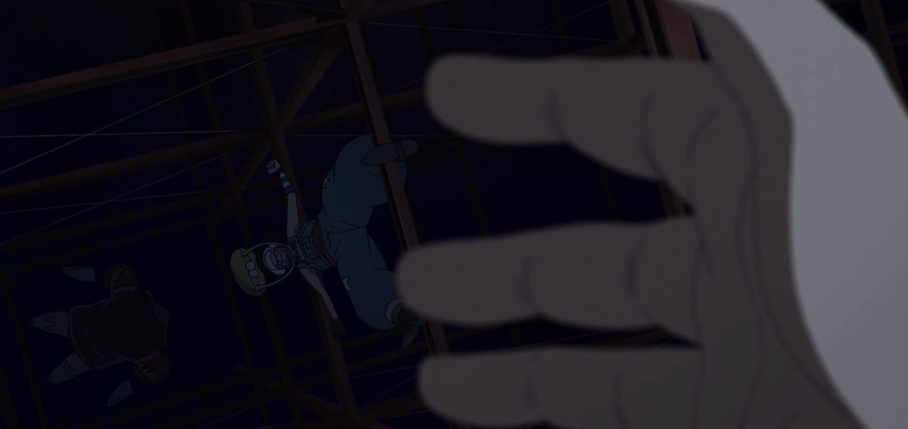When night fell on Nebulandia and the seawater fog rose up, Komei mocked Luffy as the fog canceled out his Devil Fruit power. Komei then received reports that there were two people infiltrating below the base and that Chopper, Brook, and the Foxy Pirates had been captured on Kinoko Island. Komei announced to the Marines that it was time to begin the third phase of his plan. He had also planned for Franky and Usopp's infiltration, and succeeded in electrocuting Franky. Franky saved Usopp, but left him hanging and a sitting duck as Komei and the Marines easily captured the two.