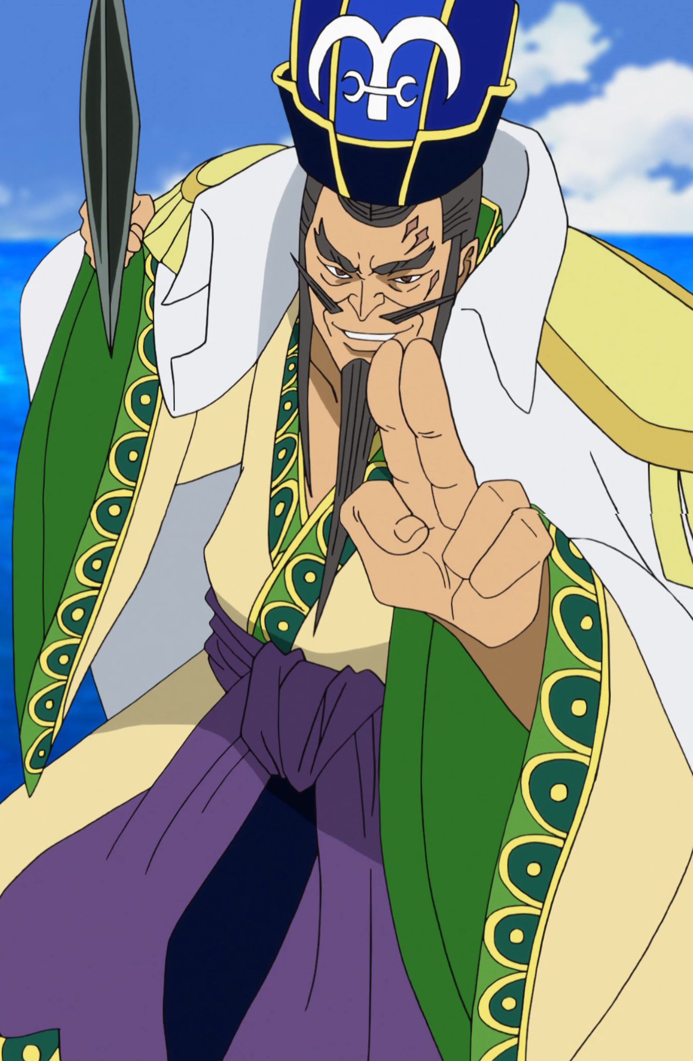 "White Feather" Komei is a Marine Vice Admiral, renowned as the "Genius Tactician" for his brilliant planning. He serves as the main antagonist of the Adventure of Nebulandia special, posing as a member of the Foxy Pirates in an elaborate plot to capture Monkey D. Luffy and the Straw Hat Pirates.