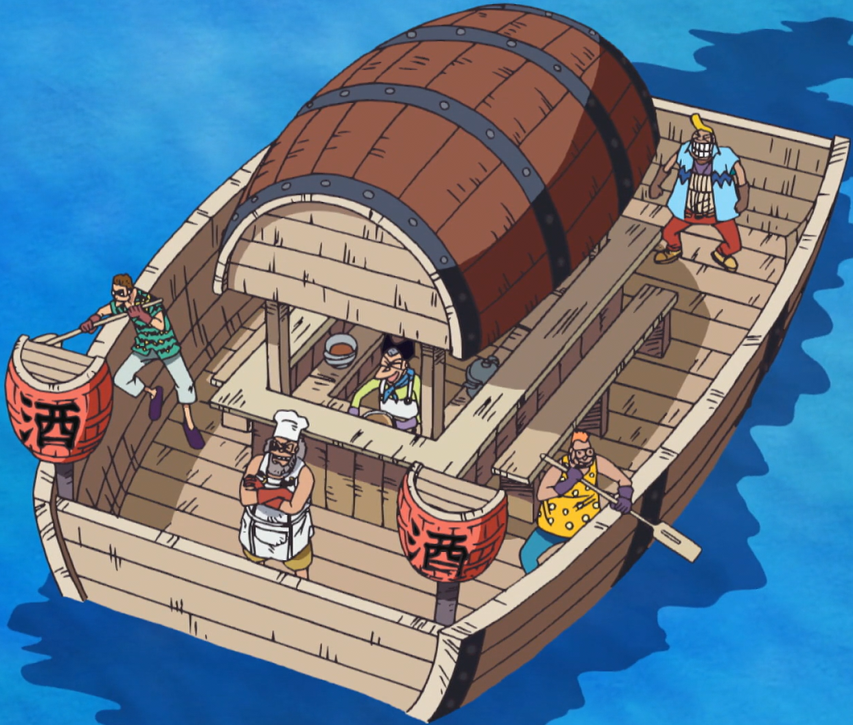 The Oyakata Bune (親方船号, Oyakata Bune-gō?, "Pleasure Boat"), the Party, Love, and Pleasure Boat in the FUNimation dub, was an anime-only festivity ship used by the Foxy Pirates for the Donut Race. The ship had 5 males on it. Along with the Harem No Tango, they tricked the rest of the Straw Hat Pirates into coming with them by giving them pleasures.[4]
