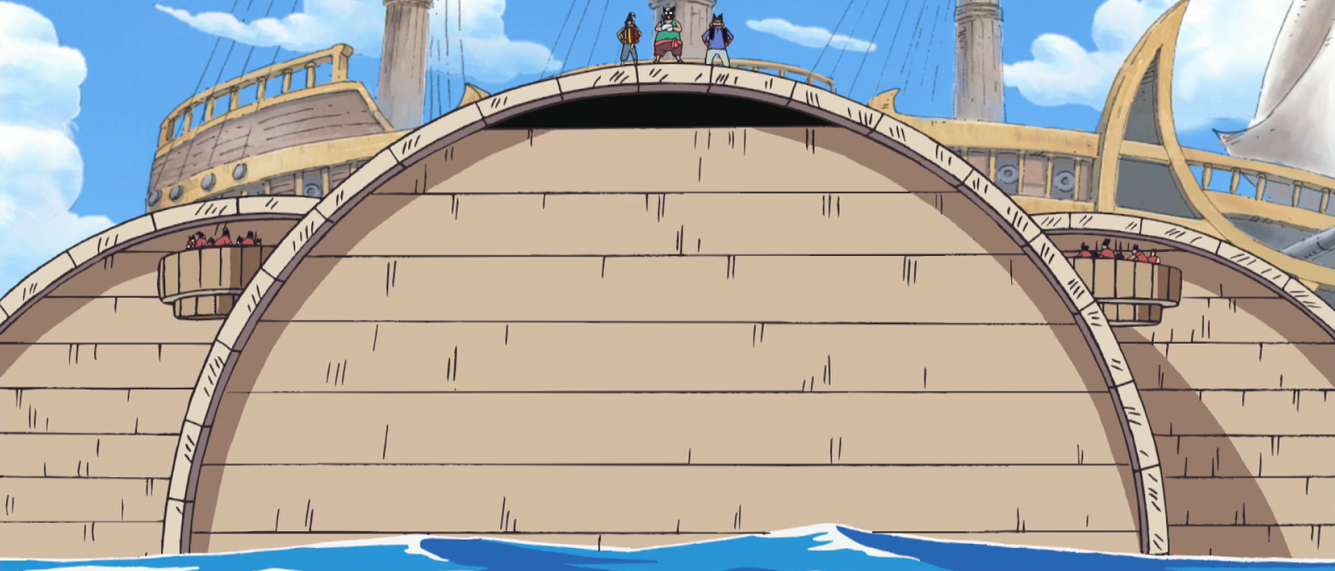 They do appear to have some impressive shipwrights and weapon makers as shown by the impressive arsenal of weapons and ships. Foxy even said not to worry about damaging the Sexy Foxy because they had many skilled shipwrights to fix it and used a wide array of cheat devises, namely the Gorilla Puncher 13 and the Foxy Head Mecha. In the anime, Foxy used the Foxy Head Mecha to subdue most of the Straw Hat crew, but he was still beaten by Luffy.[citation needed]