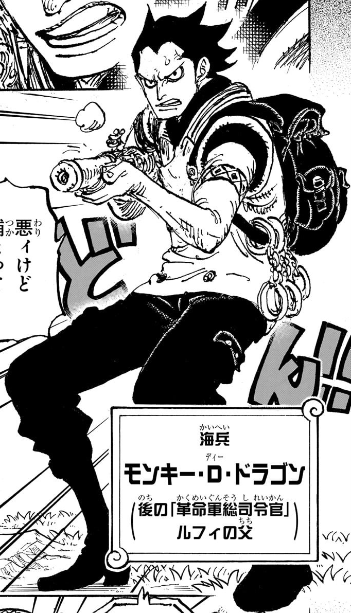 - ↑ 19.0 19.1 19.2 One Piece Manga — Vol. 114 Chapter 1166 (p. 16), Dragon is disgusted with Garp.