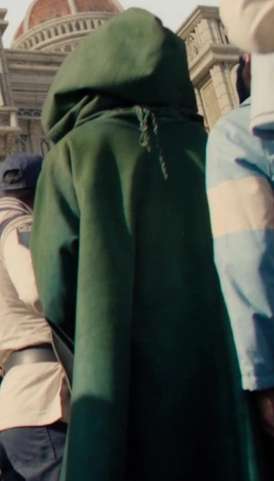 Dragon is a tall middle-aged man with long, shaggy black hair with a widow's peak and a distinct deep red (bright red in the manga) tattoo on the left side of his face which shaped like diamond patterns made out of line over-crossing each other from the corners with a smaller diamond shaped inside each box. He has a bit of stubble on his chin, and a prominent jawline with hooded eyes. He is usually dressed in a long, deep forest-green cloak (often wears like a cape), underneath which he wears the orange garb of a revolutionary, with usually dark coat over it, and dark pants.