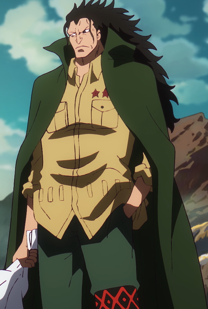 As the leader of the Revolutionary Army, Dragon is dedicated to dismantling the World Government and its corrupt nobility system that allows its World Nobles to oppress lower-class citizens as they please. He considers the corrupt nobility in his homeland of the Goa Kingdom to be the same problem on a smaller scale and was enraged when their self-serving actions caused an innocent noble boy like Sabo to denounce them, as well as being ashamed and despising his own birth.[12][13] When he rescued Sabo the next day from being attacked by a World Noble's ship, Dragon was shown with a powerful glare of anger on his face.[14]