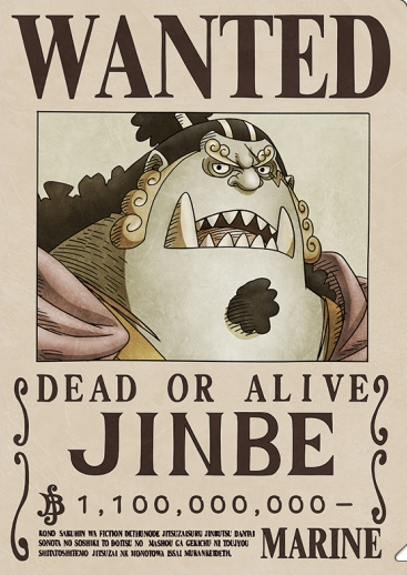 - ↑ One Piece Manga and Anime — Vol. 97 Chapter 976 (p. 19) and Episode 980, Jinbe's current bounty seen in his infobox.